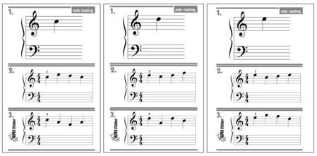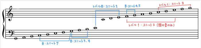 ピアノアドベンチャーに出てくる音符の順番に分けて、