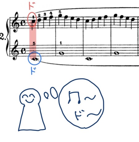 最初の音はド(右手)とド(左手)です。