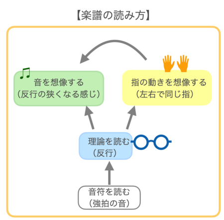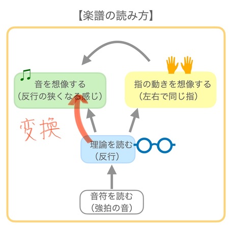 (たぶん、片手ずつ読む方法で練習したんだと思います。)