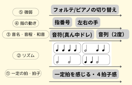 →指定のポジションに手を置き、手を隠し、指定の鍵盤を弾いてもらう